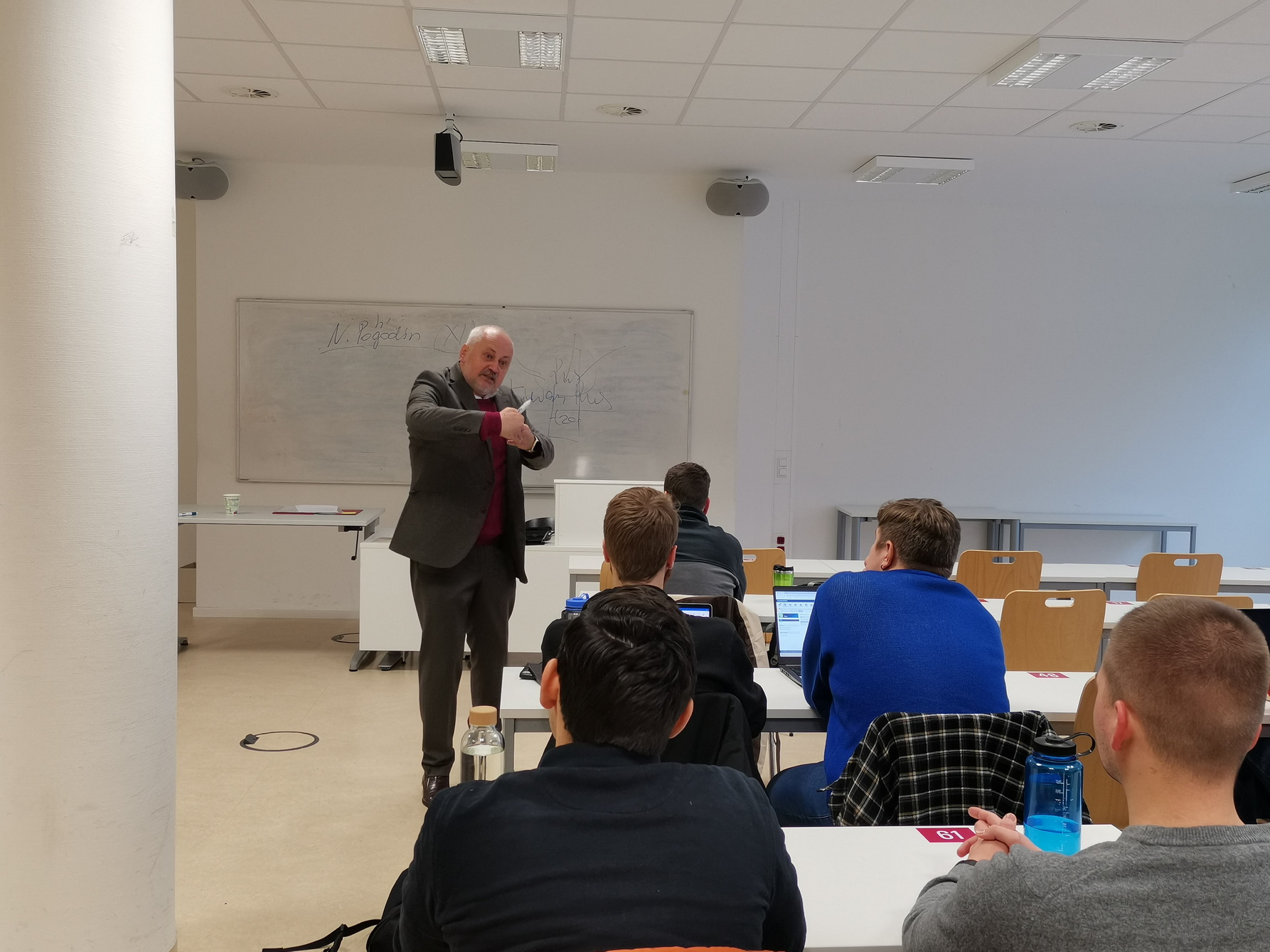Також А.Круглашов провів публічну лекцію на тему “Російське вторгнення в Україну: що це значить для Європи?!”. Публічний захід викликав цікавість не лише з боку студентів різних спеціальностей університету Оснабрюк, але й його викладачів. Упродовж свого перебування в гостинному університеті проф. А. Круглашов провів блок-семінар “Російська війна, Україна та Європа: причини та наслідки”, на який записалися та активно працювали з ним майже тридцять студентів різних спеціальностей та факультетів. Під час занять було розкрито витоки російської імперіалістичної політики, розглянуто траєкторії розвитку пострадянської росії та України, проаналізовані причини війни, хід і можливі сценарії її завершення. Студенти були активні на заняттях, за їх підсумками вони готують свої творчі роботи з питань, які обговорювалися в аудиторіях. Багато з проблем, які порушувалися лектором, були цілком невідомі учасникам занять. Приємно, що після кожного заняття у студентської молоді були додаткові запитання та бажання обговорити їх з лектором. Окремо хочеться відзначити активну участь у роботі на заняттях магістрантки ФІПМВ Каріни Гродецької.